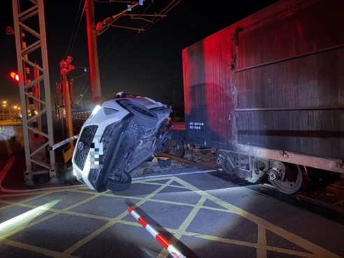 报道称,据铁路警方消息,11日晚间19时08分,一辆白色小客车行经新埔站与通霄站之间某处时,疑似违规穿越铁路道口,车尾被7501次货物列车撞击,肇事车辆侧翻卡在铁路道口上,驾驶员未受伤却离开现场。铁路警察初步调查显示,台铁7051次列车车头受损,40岁苏姓驾驶员涉嫌肇事逃逸,现场无人伤亡,双方酒精测试值均为零。