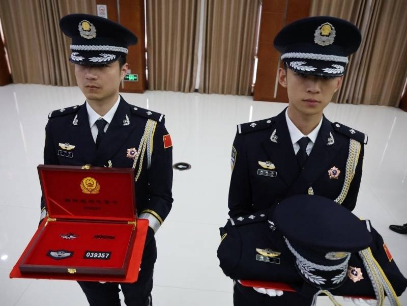 江夏区分局政委李国祥对警号和警服进行仔细整理,随后将装有“039357”警号的礼盒盒盖盖好。